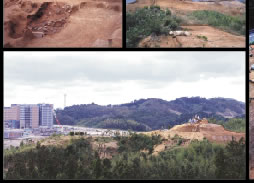 伊都キャンパス周辺には、古くからこの地域で、人々の往来が盛んであったことを示す遺跡が数多く残っています。移転決定から、度重なる調査の結果、縄文時代から江戸時代までの数多くの遺跡が分布し、貴重な遺物が出土しています。特に大寶元年(701年)と記された木簡は、大宝律令が制定され、元号表記が開始された年のものです。遺跡の調査・保存に関しては、九州大学内外の研究者及び福岡市教育委員会をはじめとする関係機関から慎重な意見聴取を進め、学術的な見地から、可能な限りの現状保存方針を採り、キャンパスの空間構成上、造成技術的に不可避な箇所については、重要部分を移設保存することにしています。 |