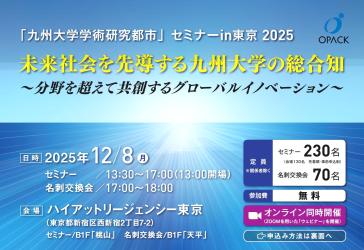 (公財)九州大学学術研究都市推進機構【担当 島田】 電話 092-805-3677 FAX 092-805-3678 メールアドレス:seminar2025tokyo@opack.jp |
